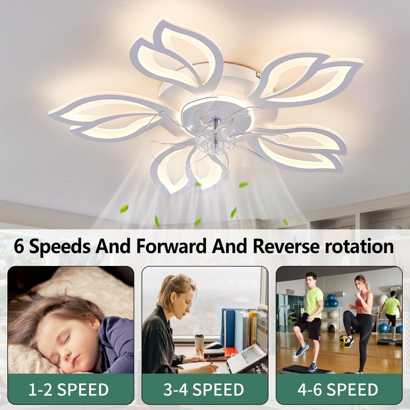 - 【Ceiling Fan with Remote/APP Control】: Control the fan and light conveniently using the included remote control or the mobile app, which supports Bluetooth connectivity. Enjoy features like 6-speed fan adjustment, sleep timer (2/4/8 hours), and light memory function for consistent settings.
