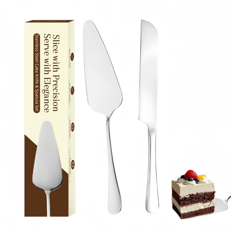 - 【パッケージ内容】☛ ケーキナイフ1点(サイズ約23.5x2.2cm)、ケーキサーバー1点(サイズ約23x4.8cm)付き。