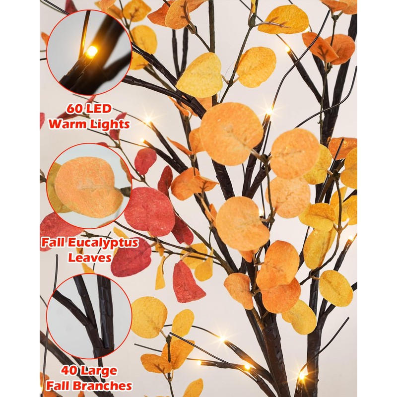 - Versatility Use in Fall Decoration for Home: Our fall eucalyptus lights up tree work perfectly for fall decorations for seasonal displays, mantels, TV stands, outdoor displays, or any of your autumn-themed decorations