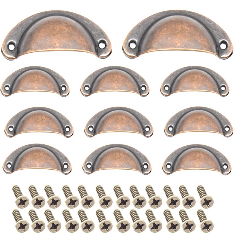 Ruidee 12 Picecs Shell Cup Handles Vintage Half Moon Drawer Pull Handle with Screws for Cabinet Cupboard Dresser Wardrobe Drawer (Red Bronze)
