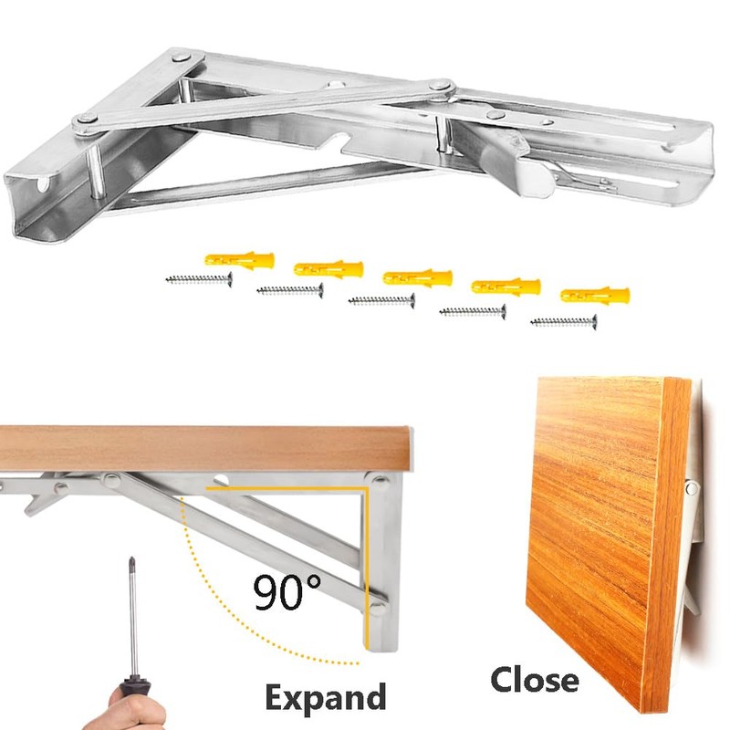 - Wall Mounted Floating Shelf Bracket Heavy Duty Metal Hinges Foldable Triangle Shelf Bracket for Table Worktop