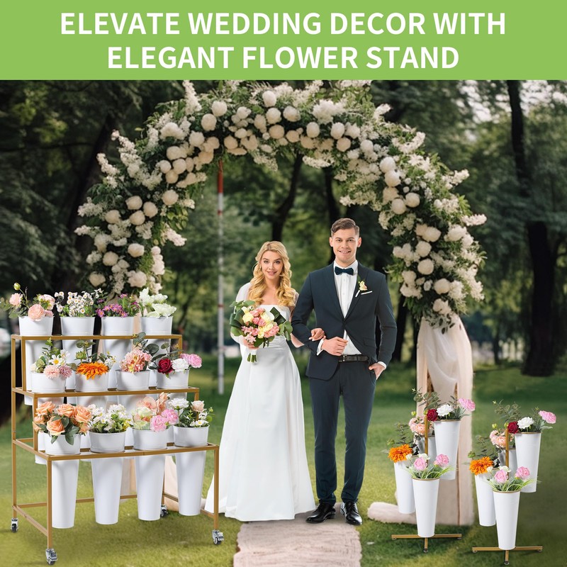 - 【Easy to Assemble】Each flower cart display stand with buckets is carefully packaged to ensure safe delivery. Installation instructions and pictures are included in the package, all accessories are numbered, please check the instructions carefully when you install them
