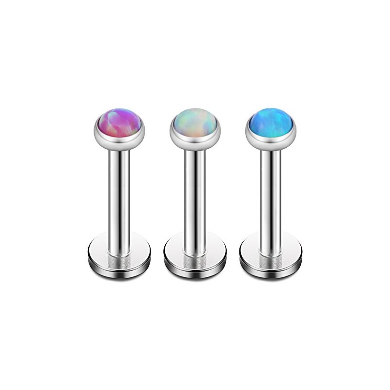 Ruifan Mix Color Opal Internally Threaded Stainless Steel Labret Monroe Lip Ring Tragus Helix Earring 16G 5/16" 8mm 3pcs