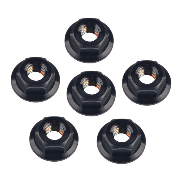 Ruifu Titanium Alloy Flanged Nuts M5 M6 6 Pack (M6, Black)