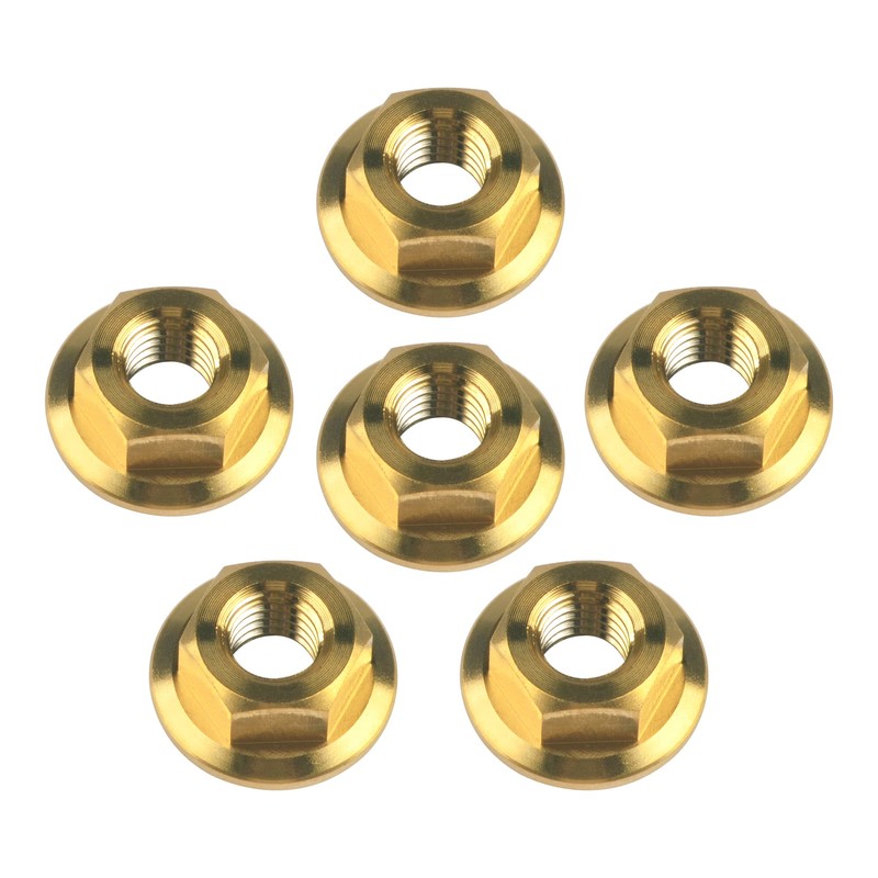 Ruifu Titanium Alloy Flanged Nuts M5 M6 6 Pack (M6, Gold)