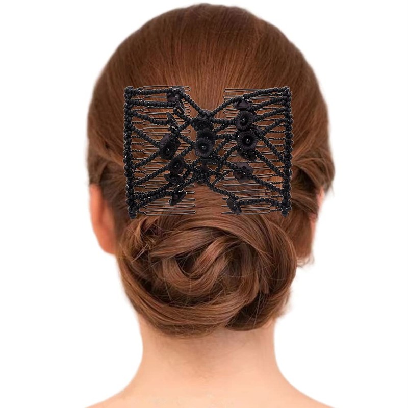 Ruihfas 3Pcs Easy Combs Women Girls DIY Hair Styling Accessories Magic Double Slide Stretchy Flower Combs Hair Clip Hairpins