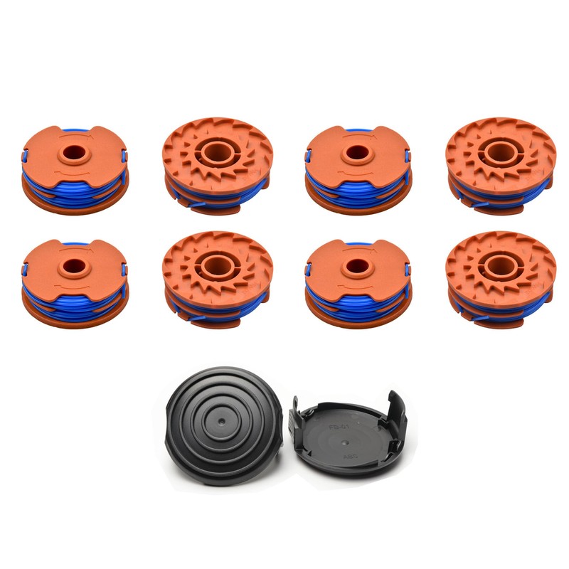 RUIITEN 10Pcs WX100 Replacement Trimmer Spool Set, 1.65mm x 8.3m Weed Eater Lines & Caps for Qualcast String Trimmer Weed Eater GT25 GGT350A1 GT30 GGT450A1 and WG100E WG104E1 (8 Spools + 2 Caps)