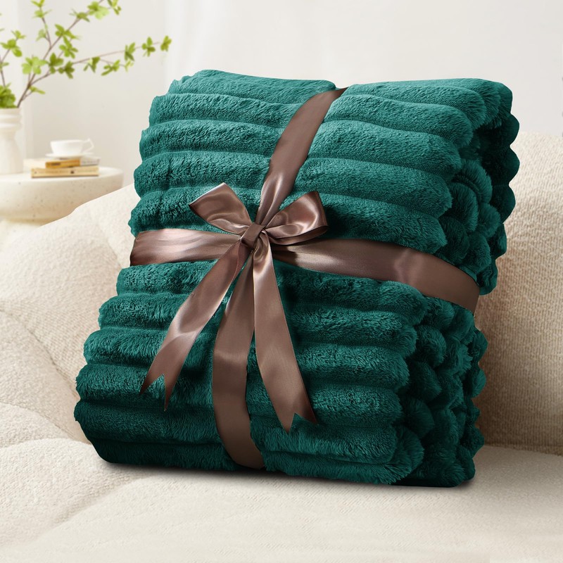 RUIKASI Fleece Throw Blanket for Sofa - Single Fluffy Emerald Green Throws for Sofas Large, Soft Warm Blanket Throw for Couch, Luxury Decorative Ribbed Bed Blanket 130x150cm