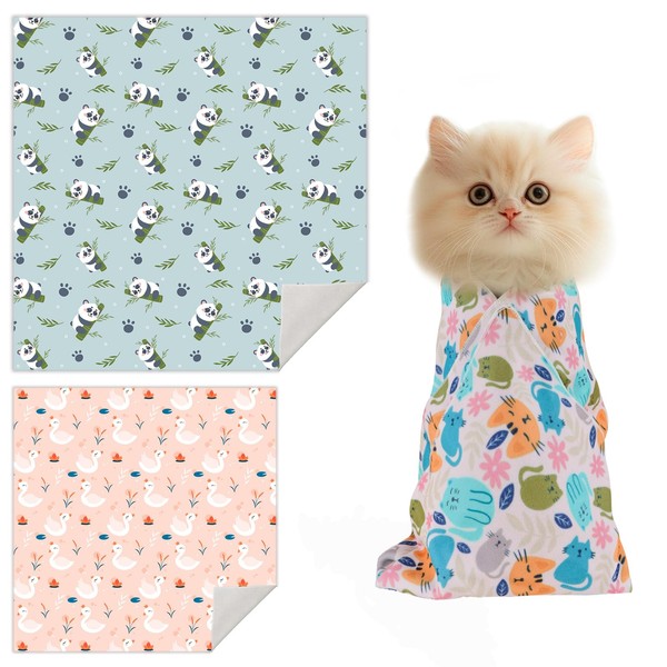 Ruiliangai Cat Wrap for Grooming Self-Adherent Cat Wrap for Cutting Nails Cat Grooming Wrap Cat Burrito Wrap Anti-Bite, Anti-Escape Cat Swaddle Wrap 2PCS (Swan-M & Panda-XL, M & XL)