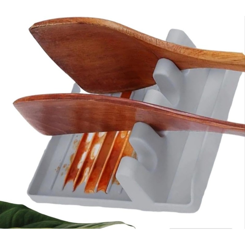 RuiLuxeKitchen Laddle, Spoon Rest, Kitchen Utensil Organizer, Holds Spatulas & Spoons,Large Spoon Holder Rest for Ladle,Tongs,Spatula, Utensil Rest with Drip Pad for Multiple Utensils (Grey)