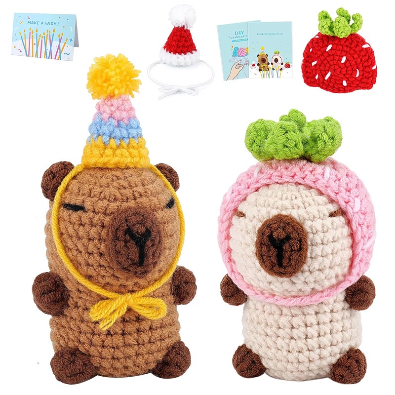 RUIOMII Capybara Crochet Animal Kit for Beginners, Crochet Kits for Adults, 2Pcs Knitting Kit with Step-by-Step Video Tutorials