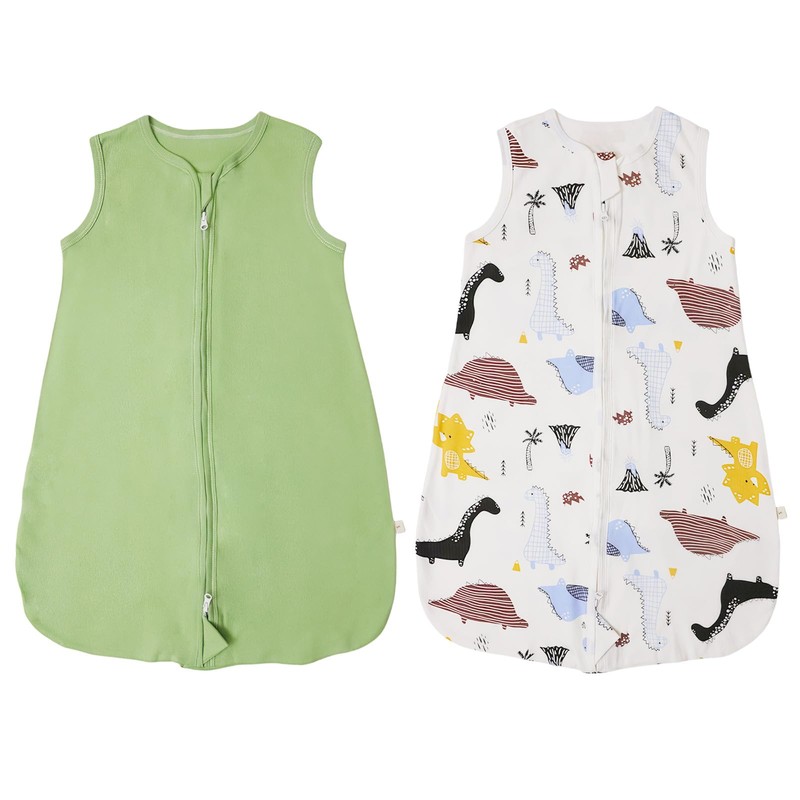 RUIOMII Pack of 2 Baby Sleeping Bags, 0-6 Months, Soft Cotton Summer Sleeping Bag, 0.5 Tog with Zip, Wearable Blanket for Toddlers, Dinosaur and Green, a, M