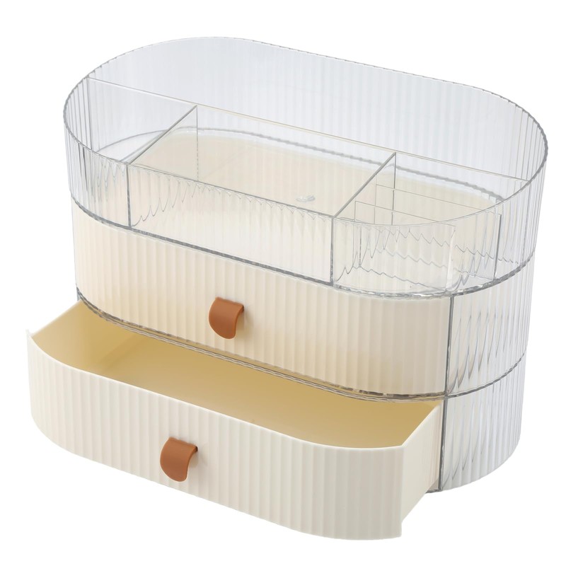 • 3 Tire Heavy Capacity Design: This makeup organizer has three spacious tiers, including a top tray and two drawers, which provides ample storage space for cosmetics, skincare products, jewellery, etc., making your dressing table clutter- free