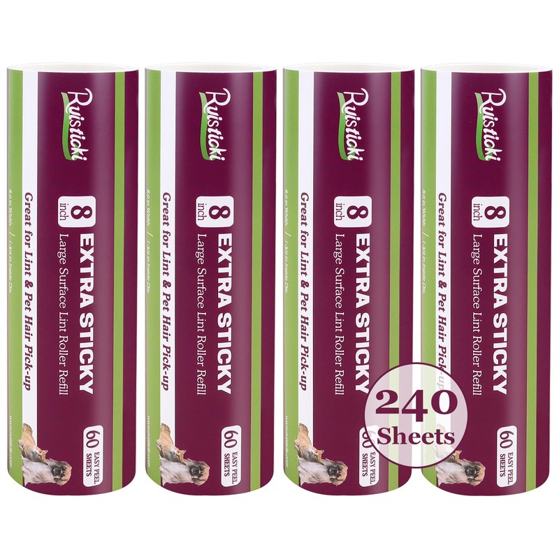Ruisticki 8 inch Lint Roller Refill for Scotch-Brite Pet Extra Sticky Large Surface Roller 50% Stickier Lint Roller Refill, Works Great On Pet Hair, 4 Refills, 60 Sheets per Refill, 240 Sheets Total