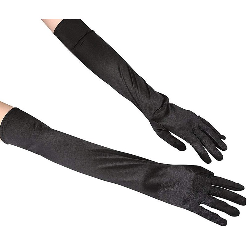 Ruiuzioong Women's Long Gloves Satin Classic Opera Festival Party Gloves 1920s Style Gloves Elastic Adult Size Elbow to Wrist Length, 52 cm - black