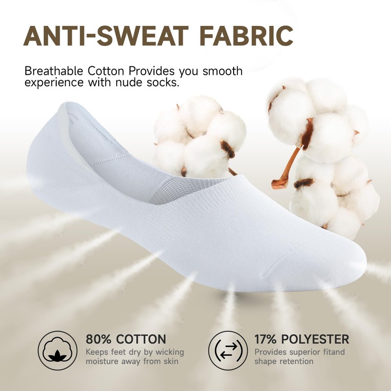 - [Anti-Sweat Fabric]- RUIXUE Low cut no show socks are made of cotton and polyster. 80% cotton keeps feet dry by wicking moisture away from skin, 17% polyester provides superior fitand shape retention. Soft sock fabric makes your feet more comfortable.