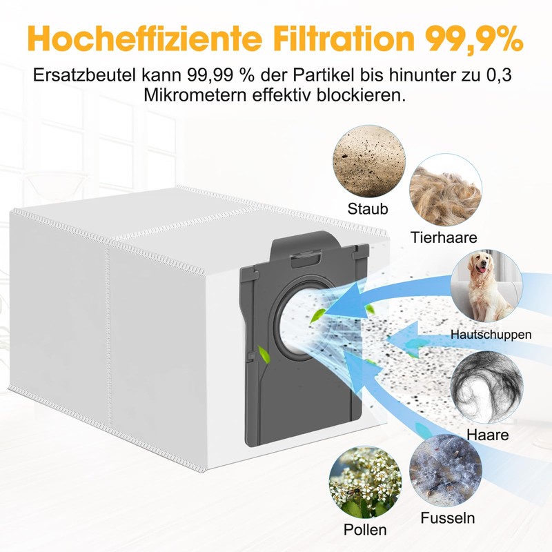 - ?? Effektive Filtration: Die Staubsaugerbeutel f1r Dreame filtern effektiv 99,9% der Feinstaub und Partikel, erheblich verbessern die Luftqualit?t Ihres Hauses.