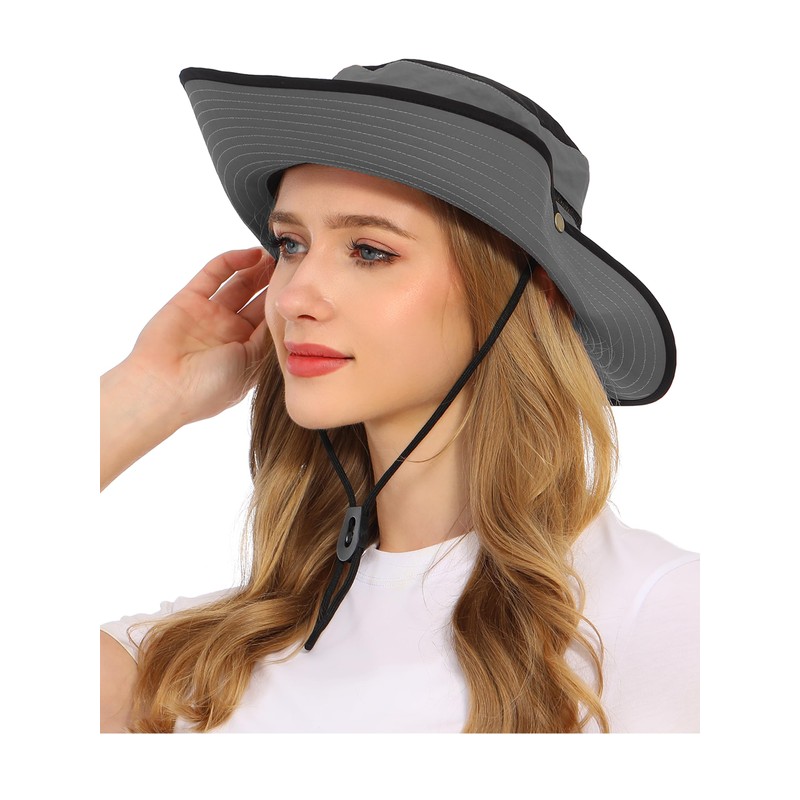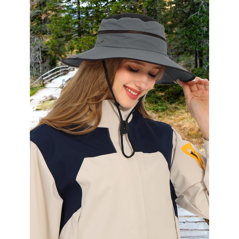 Rulala Fancy Wide Brim Sun Hat for Women and Men UPF 50+ Packable Mesh Beach Bucket Hats(Gray)