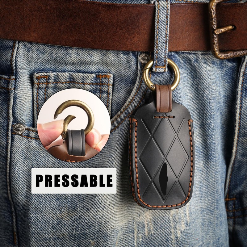 - 【Material】:We chose the good leather material, which is very soft and comfortable to touch, with hand-stitched leather car key cover. Leather can have good wear resistance, durability and shock resistance, which can stand the test of daily use. If you use it for a longer time, it will have a special wrapping effect.