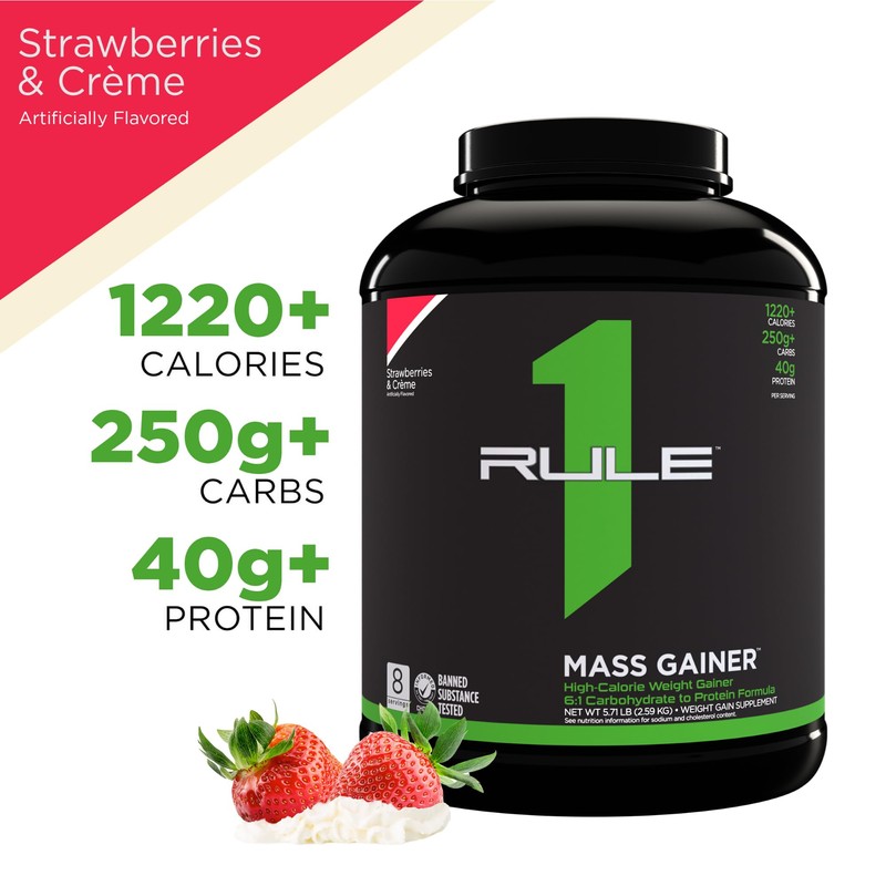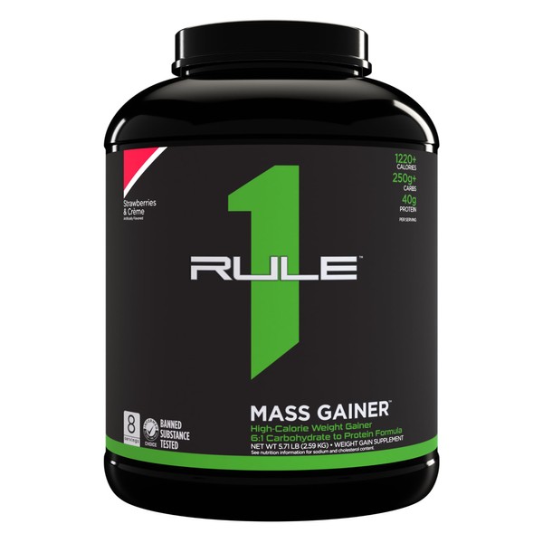 Rule 1 R1 Mass Gainer, Strawberries & Creme - 5.71 Pounds - 40g of All-Whey Protein with 6:1 Carb-to-Protein Ratio - 8 Servings