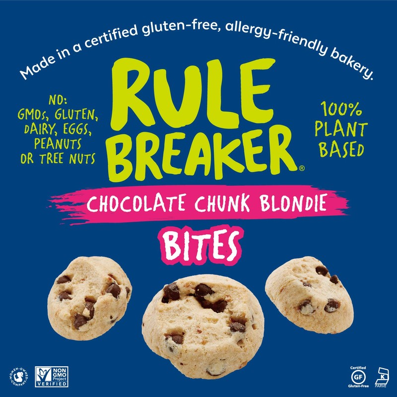 Rule Breaker Snacks Vegan Gluten Free | Chocolate Chip Blondie Cookie Bites | Plant-Based, Dairy, Nut, Soy, Allergen Free, Kosher | Soft-Baked School Snacks for Kids and Adults (Pack of 6)
