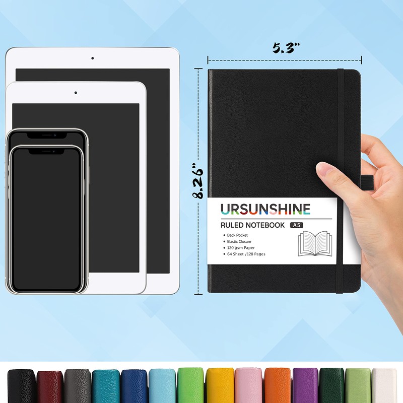 Ruled Notebook/Journal - Classic Lined Journal/Notebook, 5.3" x 8.26", Hardcover with Thick Paper, Banded + Pen Holder +Inner Pocket - Black