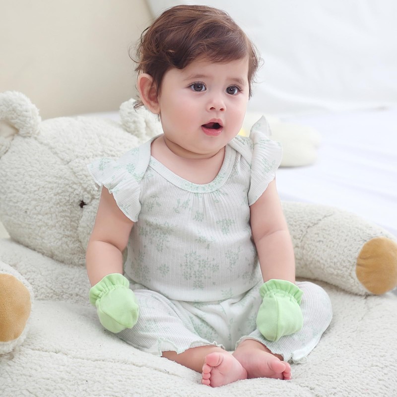 Ruliby Summer Stylish Unisex Baby Top and Pants 10-Piece Set in Soft Ribbed Cotton Blend is a lightweight and breathable fabric with good stretch. Suitable for baby to wear in warm weather.