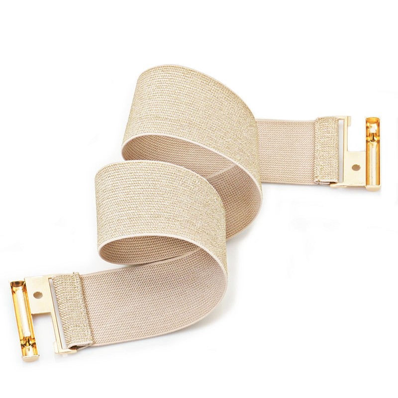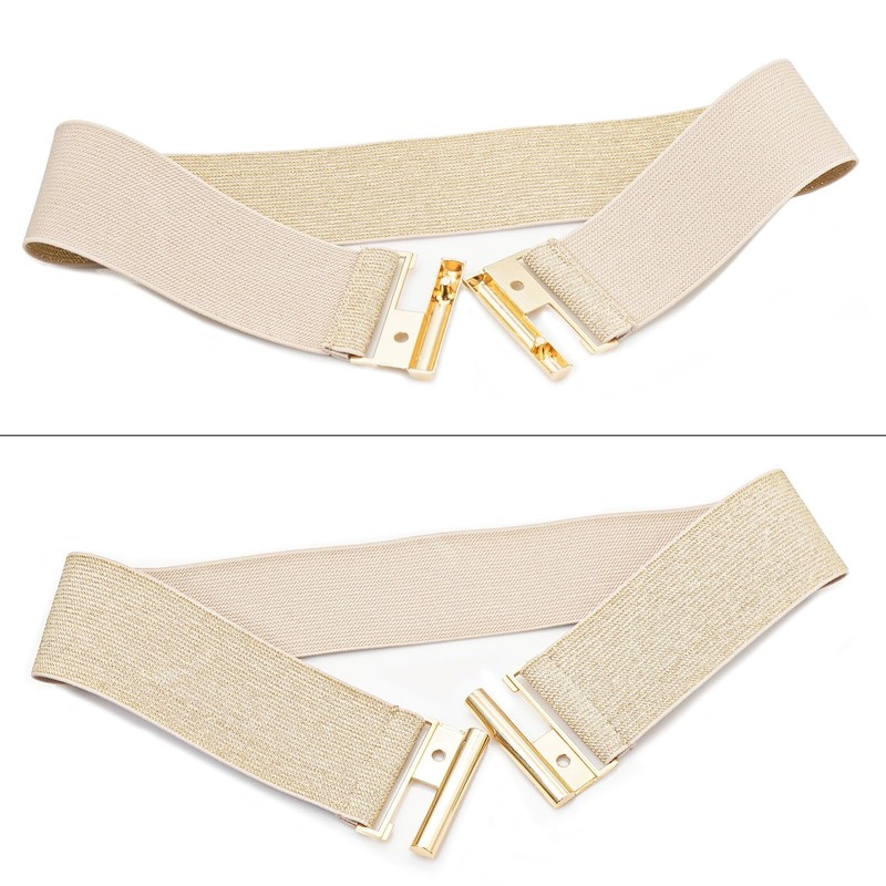 Rumnoke Wide Stretch Belt for Women Elastic Cinch Waistband for Ladies Dresses Beige + Gold Fit Waist 34"-37"