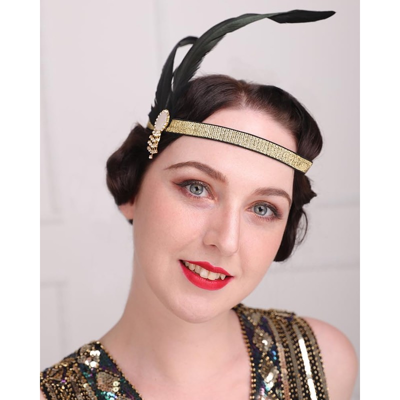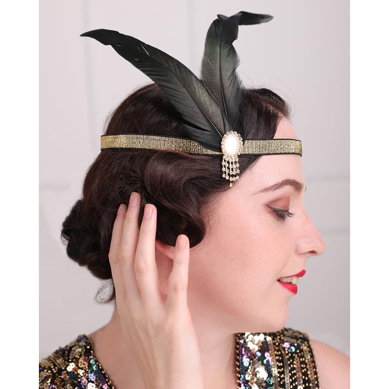 Rumtock Black Flapper Hair Accessories with Rhinestones Beads Applique Headband Tassels Hair Jewelry 20s Party Hair Piece