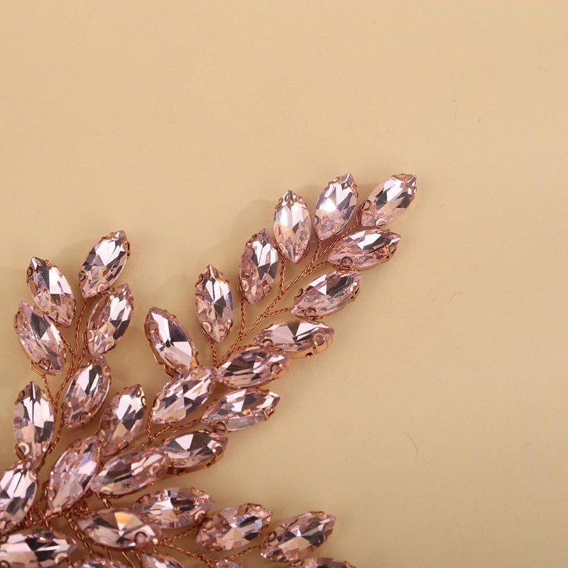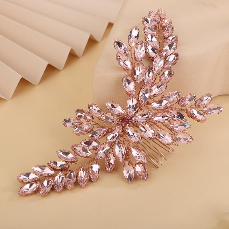 Rumtock Cute Pink Crystals Beads Hair Comb for Women Girls Wedding Bridal Handmade Hair Piece Side Headband (Pink)