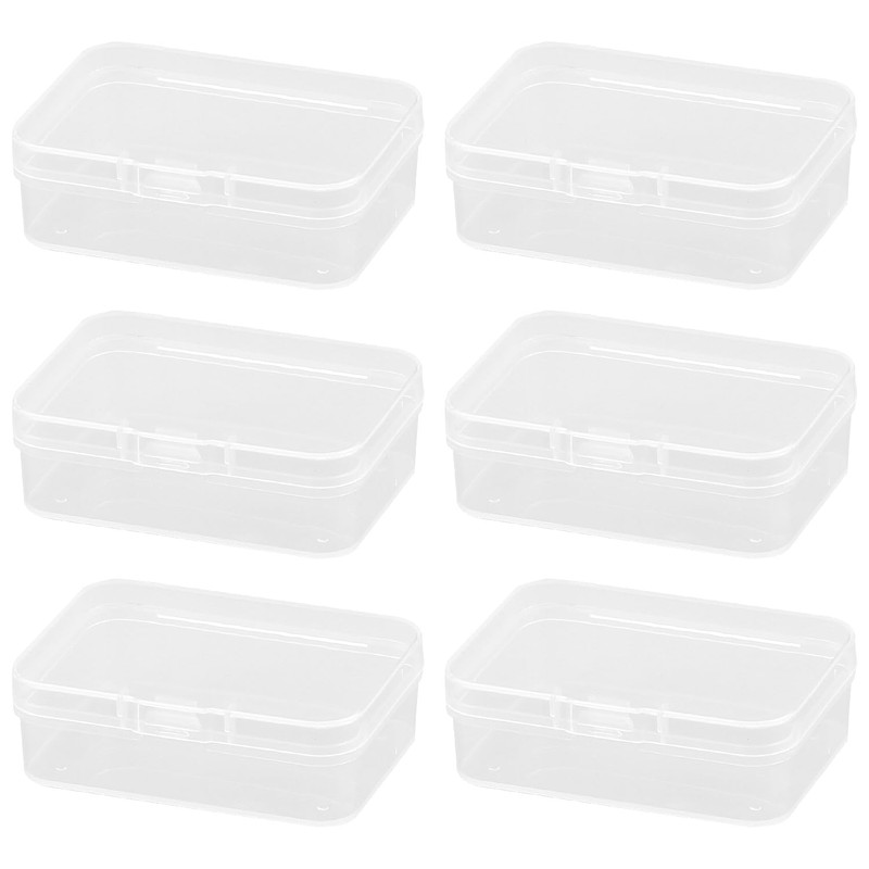 Rumyve 6Pcs Clear Plastic Storage Boxes with Lids - Mini Rectangular Containers for Beads, Business Cards, Pills, and Small Items(6.5 * 4.5 * 2 cm)