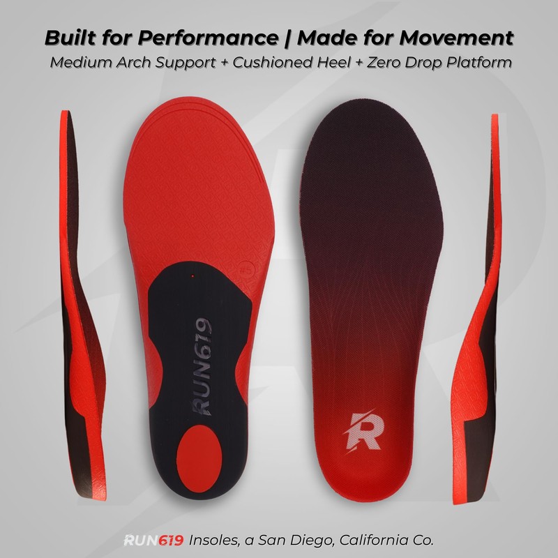 Run 619 MFM Performance Insoles | Supportive Arch | Cushioned Heel | Zero Drop Platform | Trim-to-Fit | for Running, Walking & Training