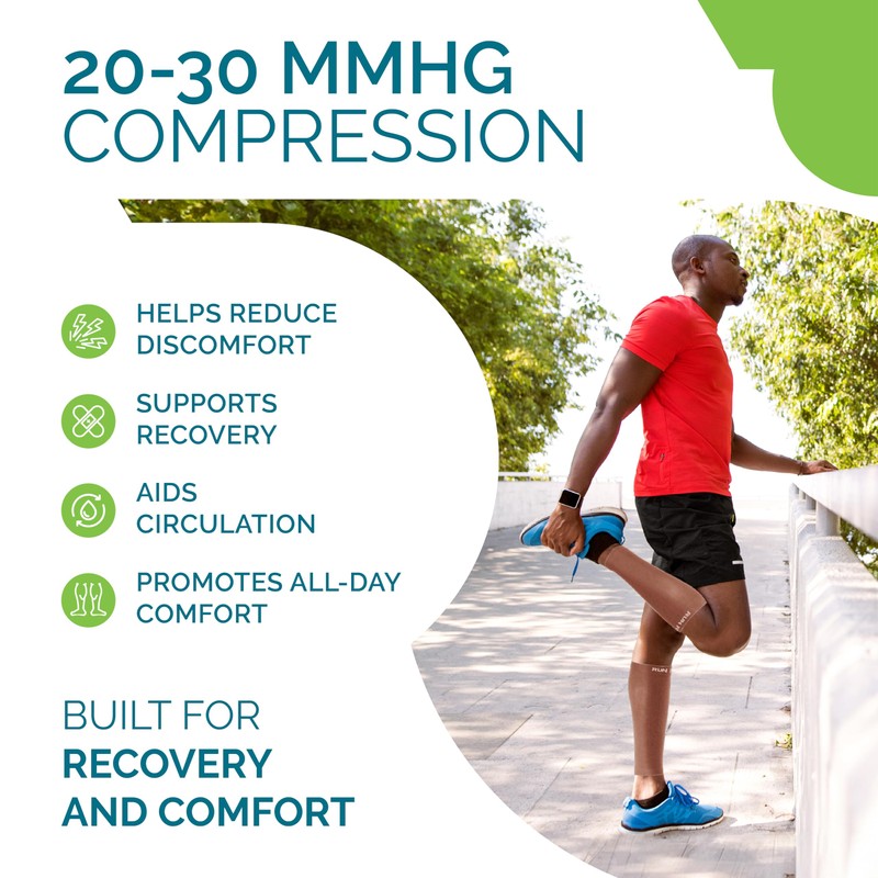 • Professional medical compression stockings: The leg wraps have true graduated compression strength of 20-30 mmhg, improving performance while alleviating leg pain, swelling and allowing for faster injury recovery