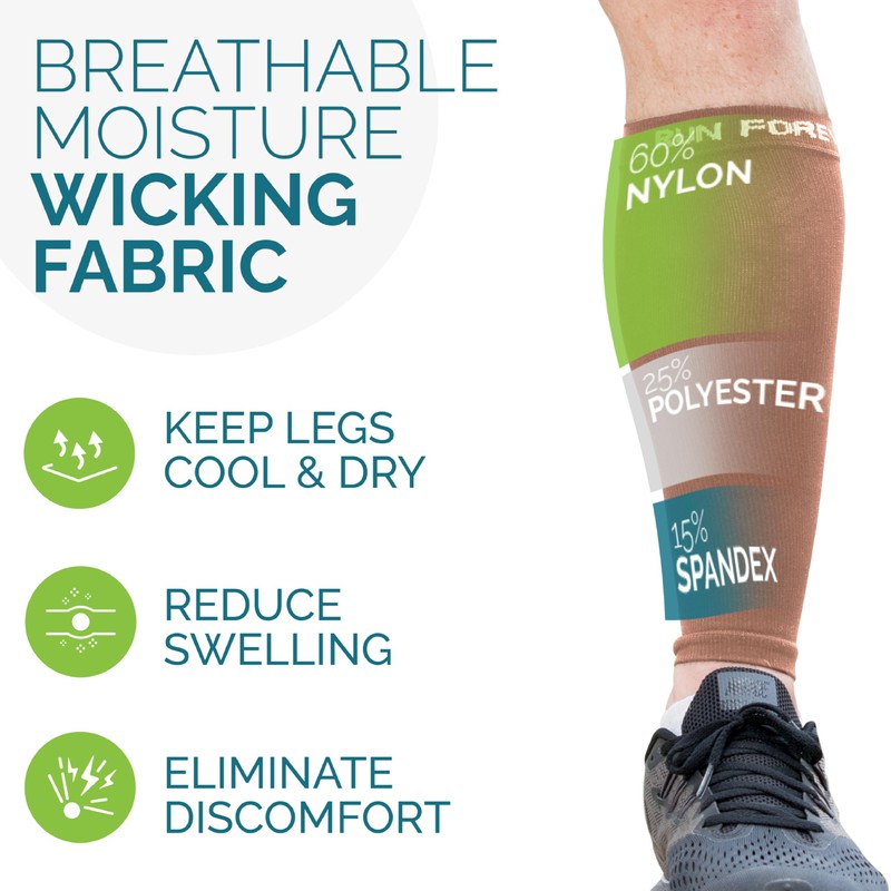 • High quality: The leg compression sleeve is made of premium fabric with a combination of 60% Nylon, 25% Polyester & 15% Spandex making it durable, machine washable, breathable & comfortable