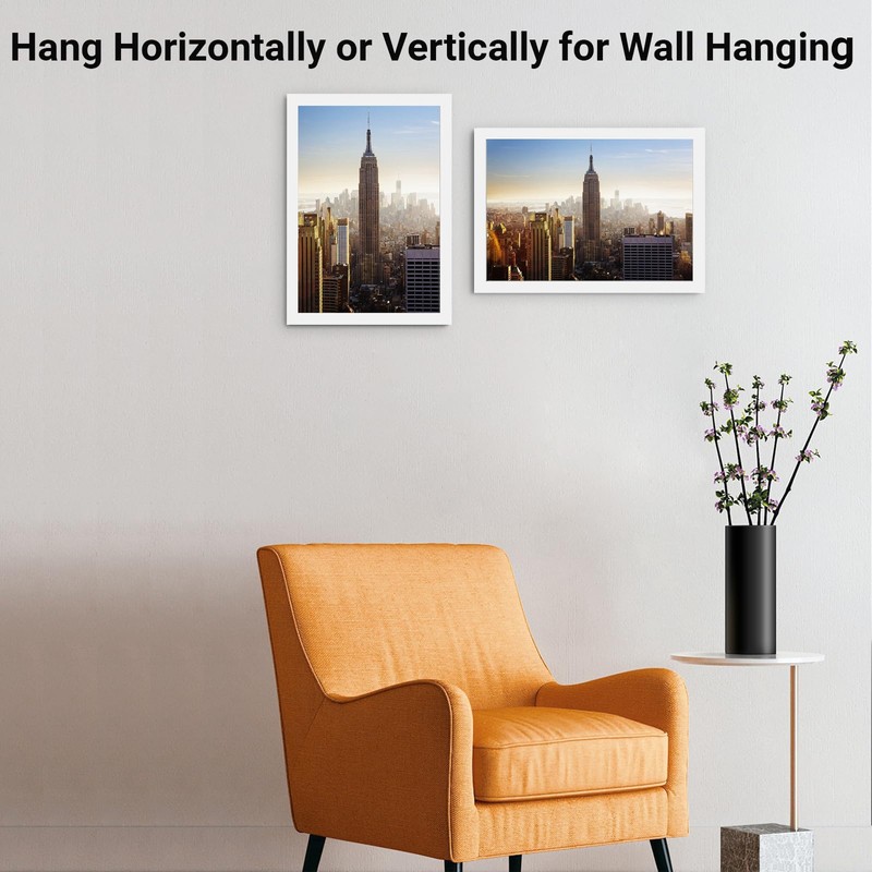- 【Versatile Picture Frame】:The picture frame in a white finish is very durable and will not warp. There are 2 hooks on the back of the photo frame, you can hang the frame on the wall vertically or horizontally,keeps the photo, picture or poster in place.