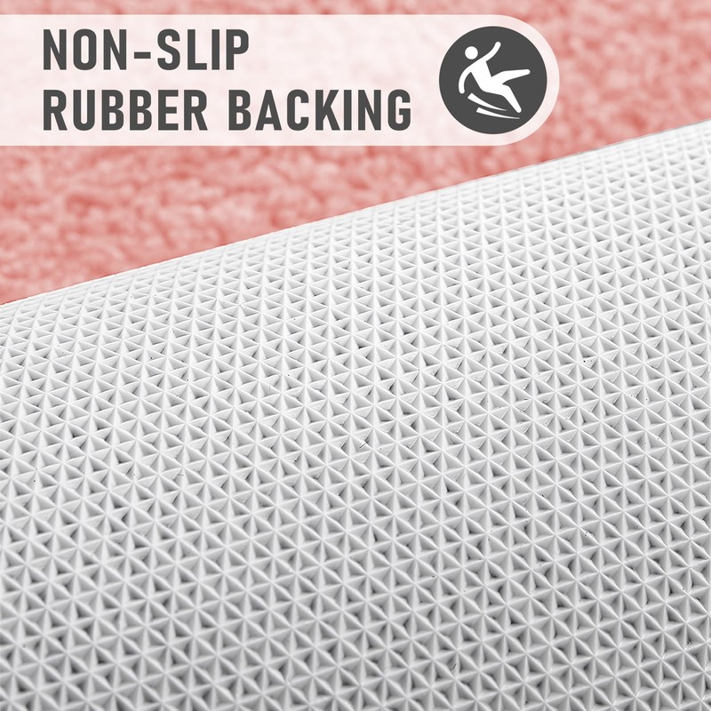 RUN HELIX Bathroom Mat 50x50cm U-Shape, 0.8inch Fluffy Long Hair Non-slip Super-Absorbent Machine Microfibre Washable Bath Rugs for Bathroom Bathtub Floor, Pink