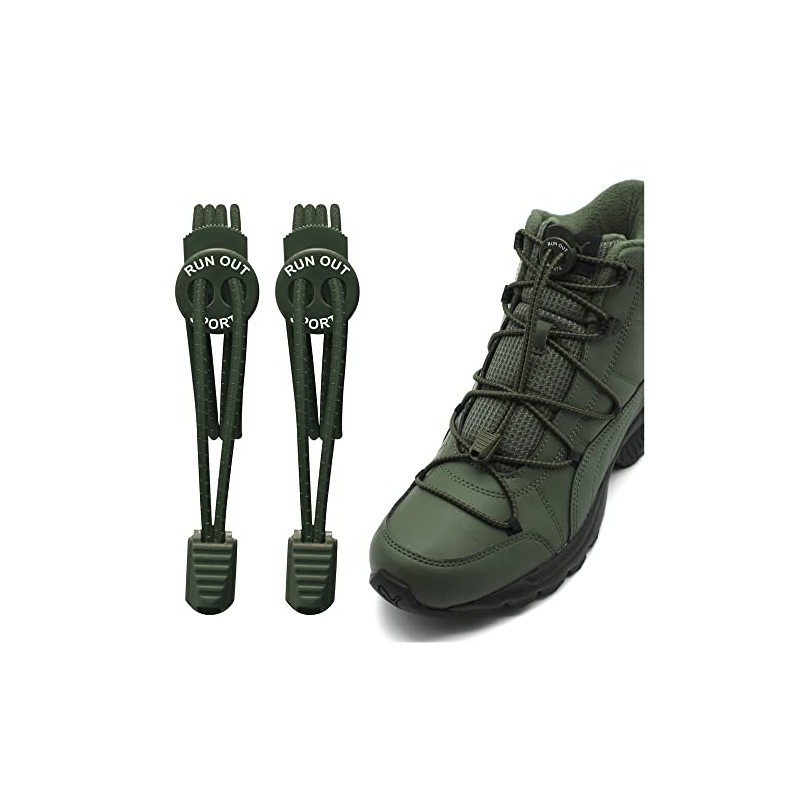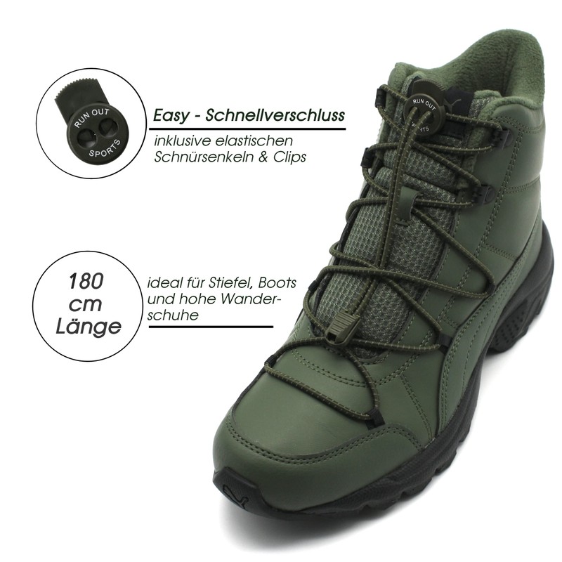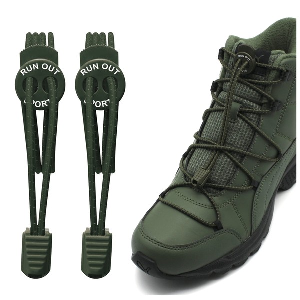 Run out sports Elastic Shoelaces for Boots without Tying 180 cm Shoelaces Reflective Quick Release for Children Adults, olive green