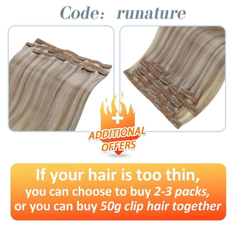 - ♥RUNATURE Real Hair Extensions Clip Quality: Using double weft instead of single weft, durable and not easy to fall off, easy to put on and take off, and will not hurt the scalp. Can be restyled, strengthened, curled, dyed, etc, change hairstyle according to different occasions, weddings, parties, birthdays, appointments, etc