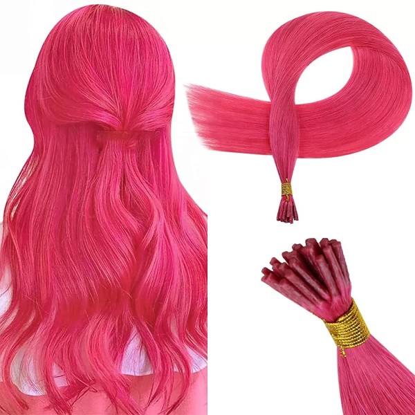 RUNATURE Hot Pink I Tip Extensiones de Cabello Humano 20 Inch Itips Extensiones de Cabello Humano Liso Remy Pre Bonded Colorido Extensiones de Cabello Humano para Mujer 25g 25Strands