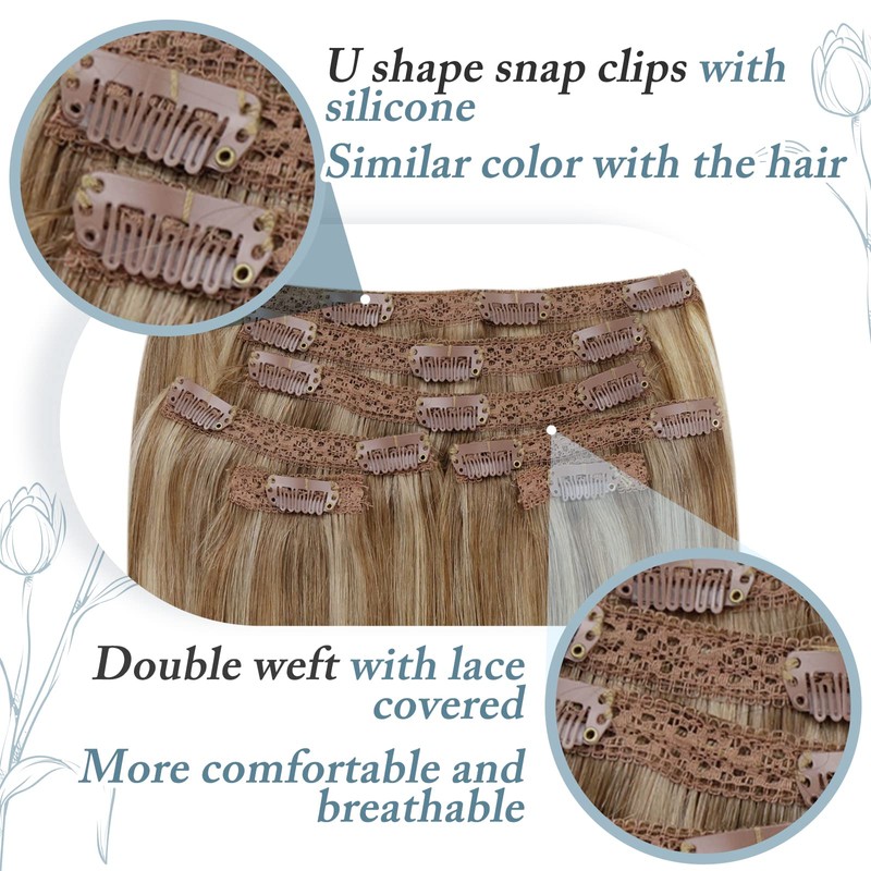 - Runature real hair clip-in extensions are double weft hair extensions, there are 18 clips and a lace base on the top of the extensions, which are safe, breathable, soft and comfortable