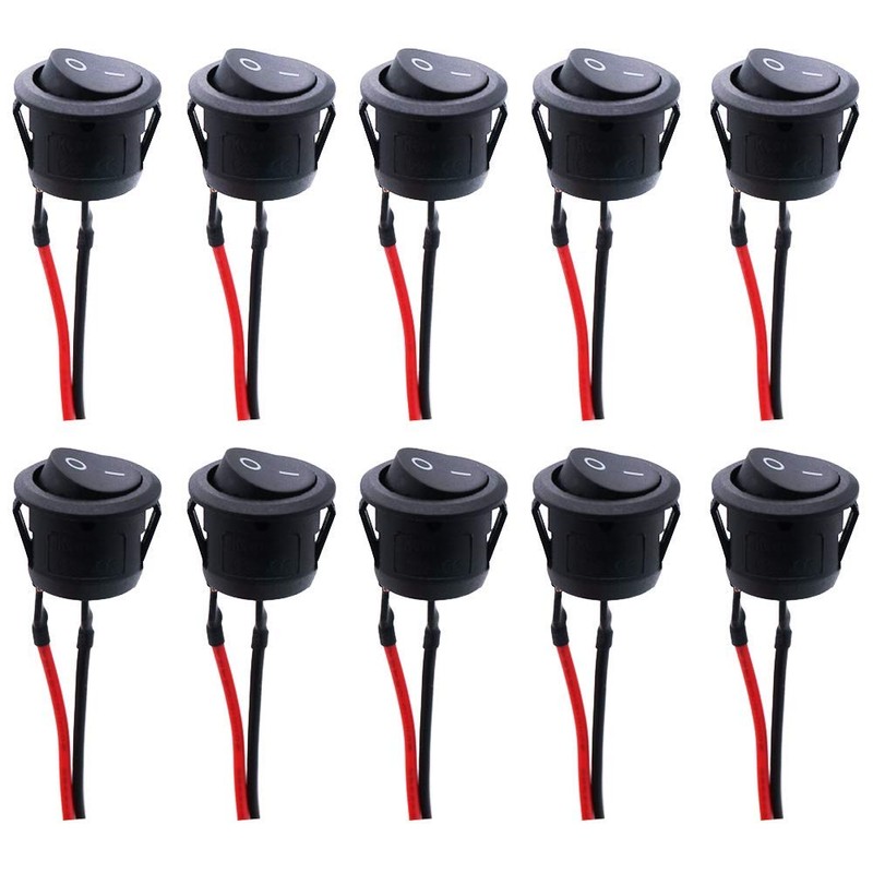 RUNCCI-YUN /10Pcs AC 6A/250V 10A/125V SPST 2 Pins 2 Position On/Off Car Boat Round Black Rocker Switch Toggle with Pre-soldered Wires for Car Truck Motorcycle Boat Marine