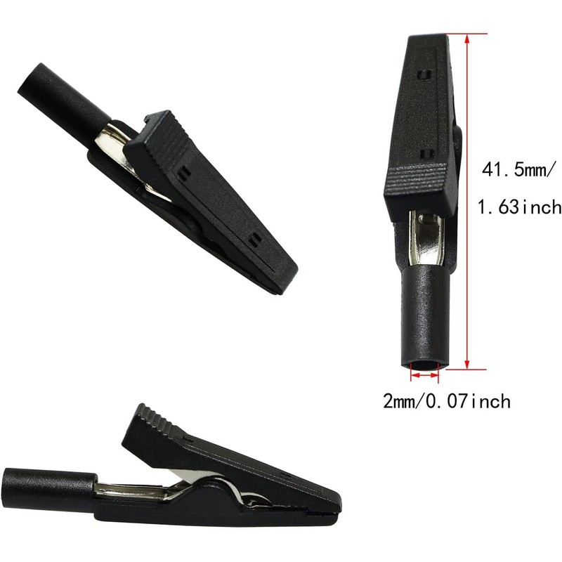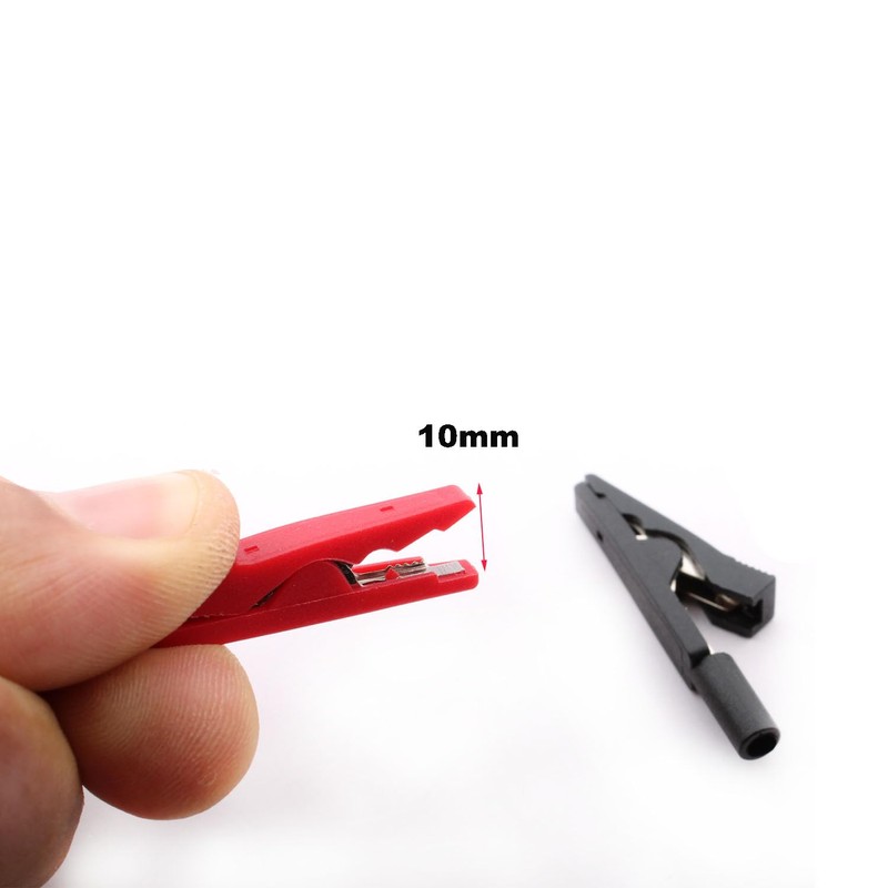 - ✔Quantity: 10 pieces, 5 pieces red and 5 pieces black alligator clips with banana socket.