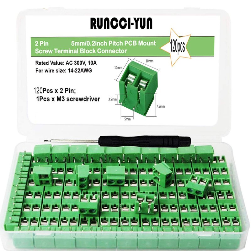 RUNCCI-YUN 120pcs Universal PCB Board Kit 2 Pin Screw Terminal Block for PCB 300V 10A 5mm Pitch(green)