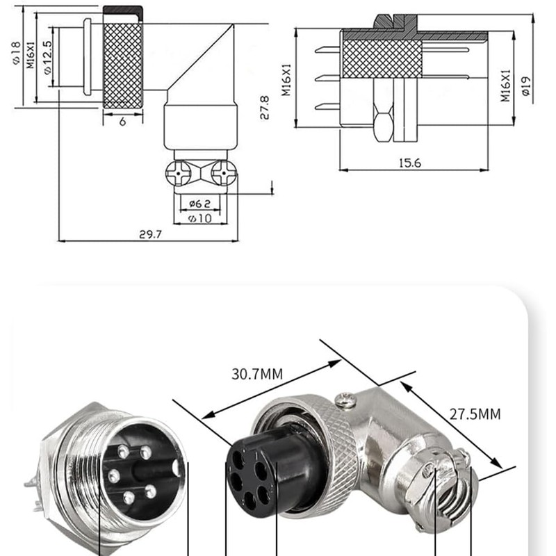 - ✔【Parameters】: GX16 Plug, 5 Pin, Right Angle, Waterproof, Plug, Female, Aviation Plug; Plug Hole Diameter: 16mm