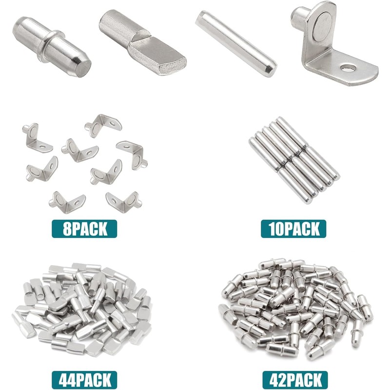 Includes: 45 pieces flat spoon shelf pins + 45 pieces cylindrical shelf pins + 15 pieces L-shaped holder pins + 15 pieces dowel pins