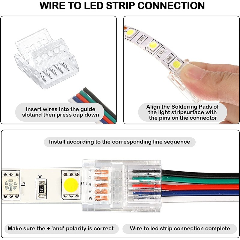 - ✔【The reason for choosing our connector】Our LED connector made of high-quality PC material is robust, safe and not easy to break, lightweight and easy to carry