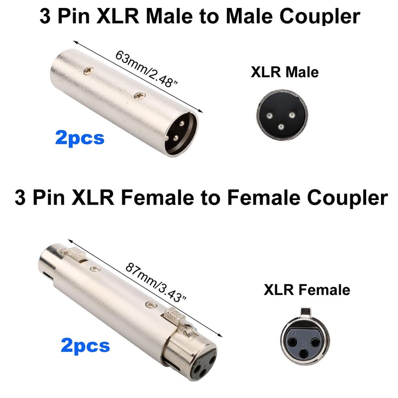 - ✔【Packing List】2 XLR 3 Pin Male to Male Couplers + 2 XLR 3 Pin Female to Female Couplers