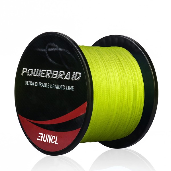 RUNCL PowerBraid Braided Fishing Line, Ultra Durable Braided Line 4 Strands - Seamless Weaving Tech, Enhanced Coating Tech, Zero Stretch, High Sensitivity (Hi-Vis Yellow, 500Yds, 40LB(18.1kgs))