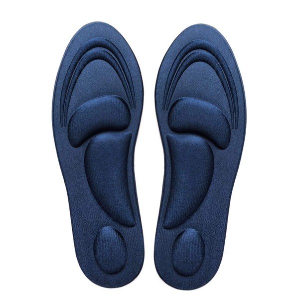 Runee Memory Foam Comfort Insole - Help Against Plantar Fasciitis and Foot Pain. Cushioning Metatarsal, Arch Support and Heel Support (Navy, Large)