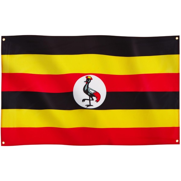 Runesol Uganda Flag, 91x152cm, 3ft x 5ft, 4 Grommets, Eyelet In Every Corner, NRM Liberation Day, Ugandan Flag, Grey Crowned Crane, Premium Flags, Inside, Outside, Vivid Colours